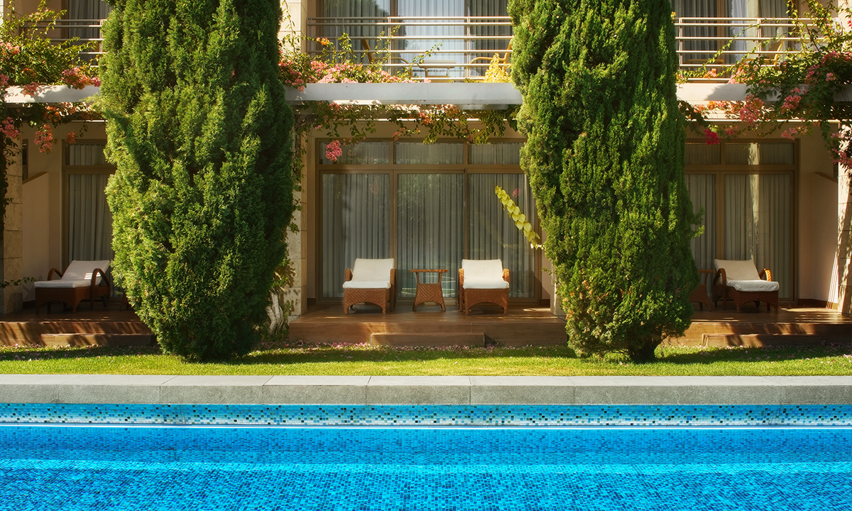 Step into a realm of luxurious comfort where your private terrace opens directly to a shared pool. Enjoy seamless access to refreshing waters and unwind in your elegantly designed retreat.
