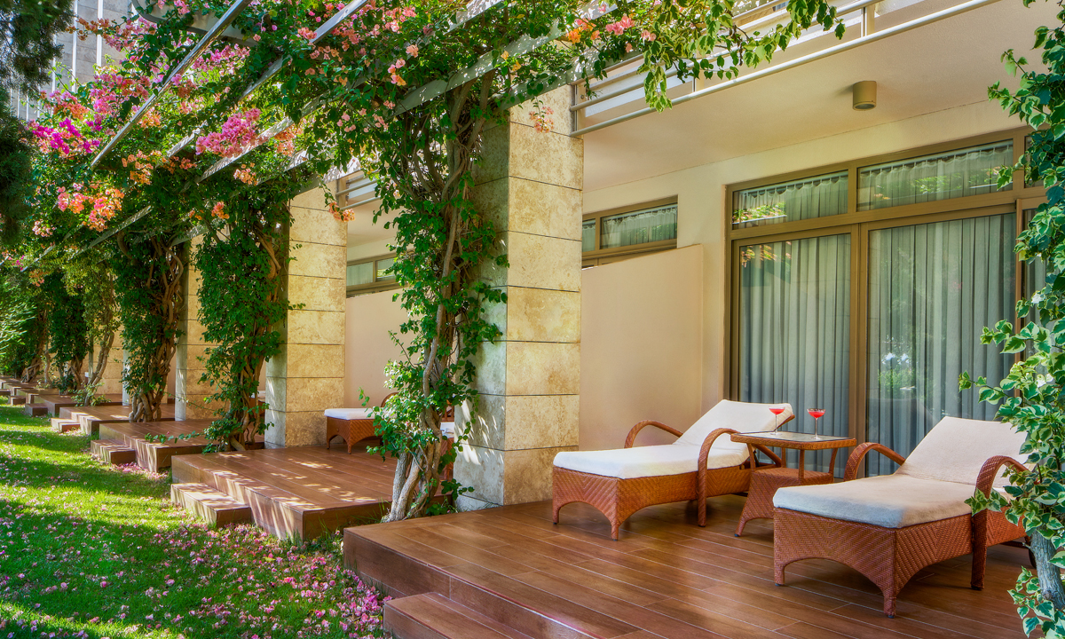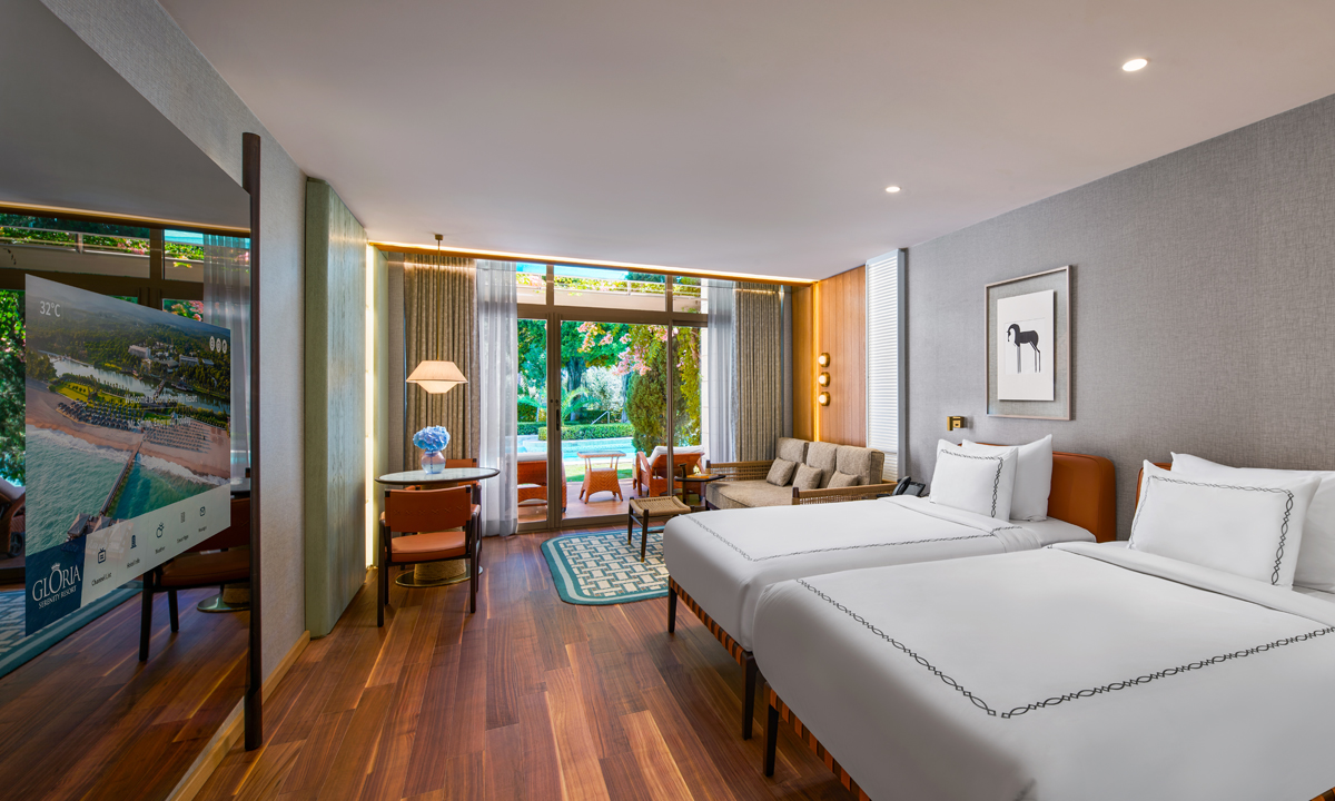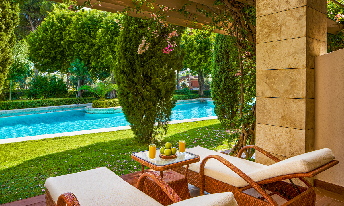 Погрузитесь в мир роскошного комфорта, где ваша частная терраса выходит прямо к общему бассейну. Наслаждайтесь бесшовным доступом к освежающим водам и отдыхайте в своем элегантно оформленном уединенном уголке.